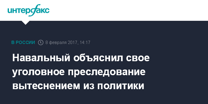 Москва. 8 февраля. INTERFAX.RU - Оппозиционер Алексей Навальный, признанный виновным по делу "Кировлеса", назвал свое уголовное преследование политически мотивированным и связал его с вытеснением из политики.