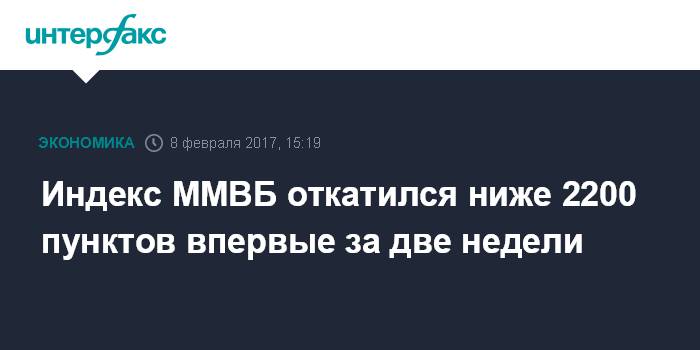 Москва. 8 февраля. INTERFAX.RU - Индекс ММВБ, один из основных российских фондовых индикаторов, днем в среду откатился ниже 2200 пунктов впервые за 2 недели из-за прекратившегося ослабления рубля.