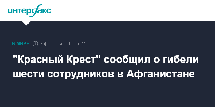 Москва. 8 февраля. INTERFAX.RU - Международный комитет Красного креста (МККК) сообщил о гибели шести сотрудников и о пропаже еще двух на севере Афганистана.