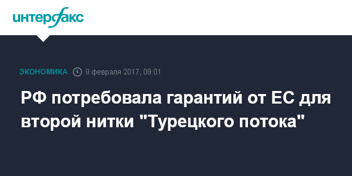 Москва. 9 февраля. INTERFAX.RU - Российская сторона не намерена строить вторую нитку "Турецкого потока" в Европу в условиях отсутствия гарантий и одобрения от Еврокомиссии.