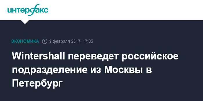 Wintershall переведет российское подразделение из Москвы в Петербург