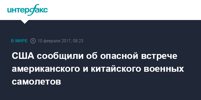 Москва. 10 февраля. INTERFAX.RU - Тихоокеанское военное командование США сообщило в пятницу, что на текущей неделе отмечена "опасная встреча" китайского самолета дальнего радиолокационного обора (ДРЛО) KJ-200 и американского военно-морской авиации США P-3C.