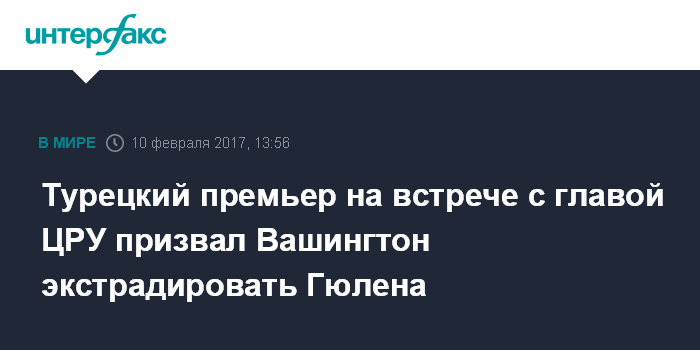Турецкий премьер на встрече с главой ЦРУ призвал Вашингтон экстрадировать Гюлена
