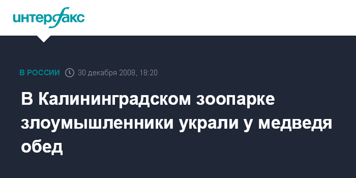 Москва. 30 декабря. INTERFAX.RU - В Калининградском зоопарке злоумышленники украли у медведя продукты дневного рациона, сообщили "Интерфаксу" во вторник в региональном УВД.
