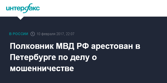 Полковник МВД РФ арестован в Петербурге по делу о мошенничестве