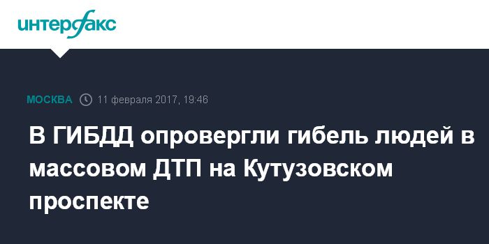 Москва. 11 февраля. INTERFAX.RU - Московская Госавтоинспекция опровергла информацию о погибших в автомобильной аварии с участием шести машин на Кутузовском проспекте.