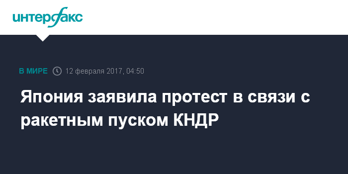 Москва. 12 февраля. INTERFAX.RU - Генсек японского кабинета министров сообщил, что Япония заявила протест в связи пуском Северной Кореей баллистической ракеты.