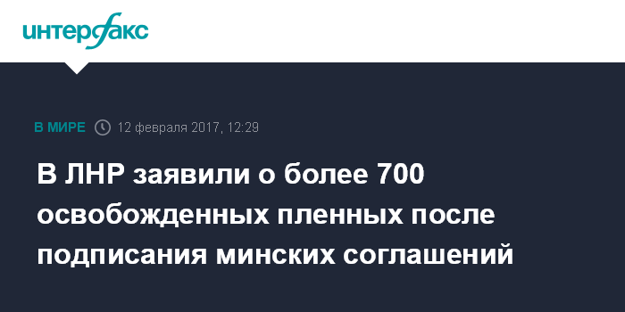 Москва. 12 февраля. INTERFAX.RU - Глава самопровозглашенной Луганской народной республики Игорь Плотницкий заявил, что с момента подписания минских договоренностей гуманитарной подгруппе по Донбассу удалось освободить более 700 военнопленных с обеих сторон.