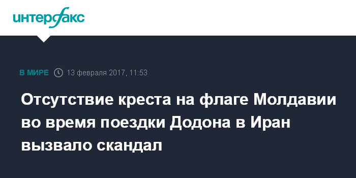 Москва. 13 февраля. INTERFAX.RU - В Молдавии разгорелся скандал в связи с искажением государственного флага, вывешенного в ходе визита президента Игоря Додона в Иран.