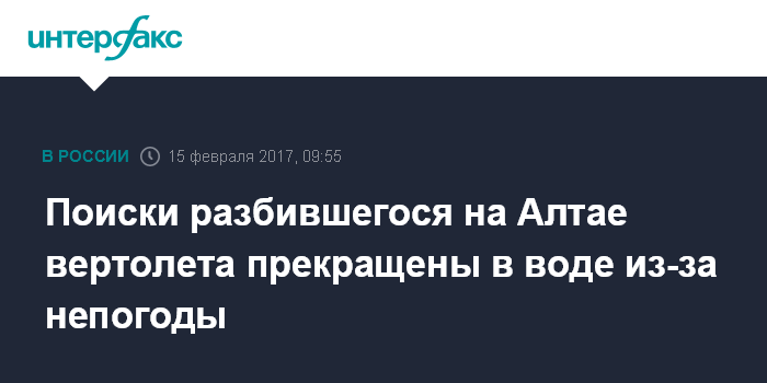 Поиски разбившегося на Алтае вертолета прекращены в воде из-за непогоды