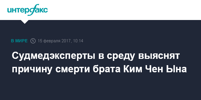 Москва. 15 февраля. INTERFAX.RU - В больнице столицы Малайзии Куала-Лумпура в среду планируется провести вскрытие тела умершего накануне Ким Чон Нама, сводного брата северокорейского лидера Ким Чен Ына, сообщает малайзийская пресса. В ходе вскрытия планируется выяснить, что стало причиной его смерти.