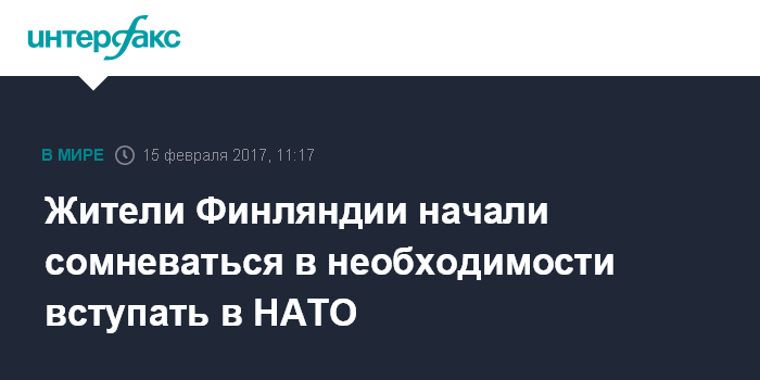 Москва. 15 февраля. INTERFAX.RU - В Финляндии увеличилось число сомневающихся в необходимости вступления страны в НАТО.