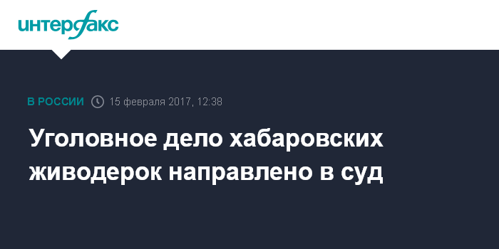 Москва. 15 февраля. INTERFAX.RU - Генеральная прокуратура России направила в суд уголовное дело о жестоком обращении с животными, в котором обвиняются три девушки из Хабаровска. Об этом сообщил "Интерфаксу" официальный представитель надзорного ведомства Александр Куренной.