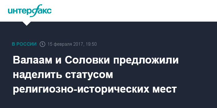 Москва. 15 февраля. INTERFAX.RU - Министерство культуры и Русская церковь разработали рекомендации по созданию религиозно-исторических мест, к их числу планируют отнести Соловки и Валаам.