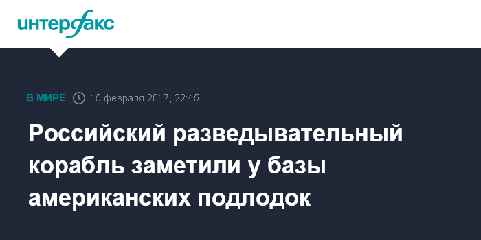 Москва. 15 февраля. INTERFAX.RU - Российский разведывательный корабль "Виктор Леонов" прошел в примерно 55 км от базы подлодок США в штате Коннектикут, сообщает в среду Fox News.