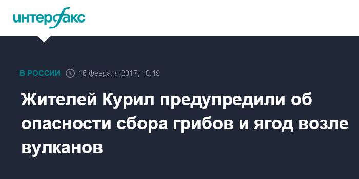 Москва. 16 февраля. INTERFAX.RU - Грибы, ягоды и растения, растущие вблизи вулканов, нельзя употреблять в пищу и для приготовления лекарств. К такому заключению пришли ученые, исследовавшие химический состав грибов "чага" (так называемый "березовый гриб"), собранных вблизи вулканов на острове Кунашир (Южные Курилы), сообщается в четверг на сайте государственного заповедника "Курильский".