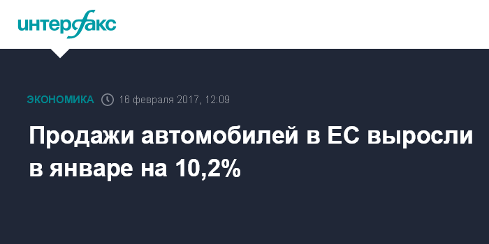 Продажи автомобилей в ЕС в январе составили 1,17 млн автомобилей. Столь высокий показатель аналитики связывают с тем, что в январе 2017 года было больше рабочих дней, чем в январе 2016-го. В странах ЕС (без Мальты), Исландии, Лихтенштейне, Норвегии и Швейцарии в январе было продано 1,2 млн автомобилей, или на 10,1% больше, чем годом ранее.