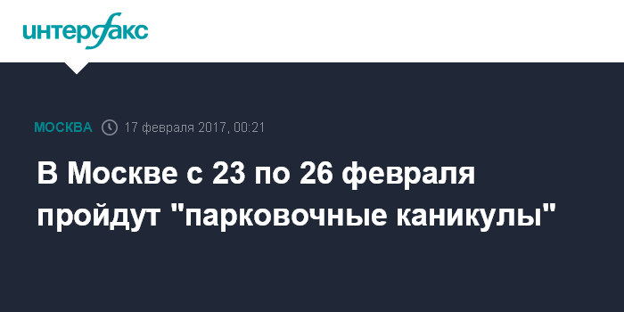 Москва. 17 февраля. INTERFAX.RU - В праздничные дни февраля московские парковки будут бесплатными, сообщили "Интерфаксу" в Государственном казенном учреждении (ГКУ) "Администратор московского парковочного пространства".