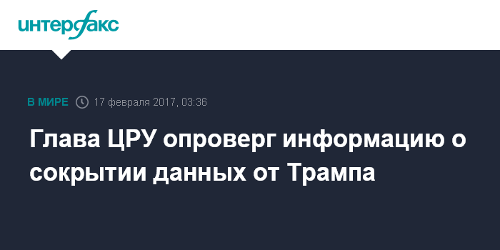 Москва. 17 февраля. INTERFAX.RU - Директор ЦРУ Майк Помпео опроверг сообщения СМИ о том, что сотрудники разведки скрывают информацию от верховного главнокомандующего, президента США Дональда Трампа.