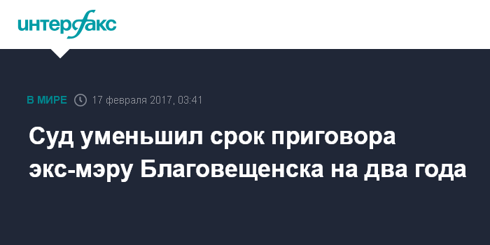 Москва. 17 февраля. INTERFAX.RU - Амурский областной суд изменил приговор бывшему главе Благовещенска Александру Мигуле, сократив срок лишения свободы в колонии общего режима на два года. Окончательное наказание экс-мэру составило семь лет в колонии общего режима.