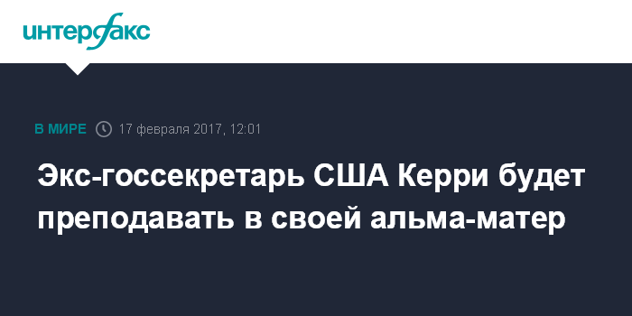 Москва. 17 февраля. INTERFAX.RU - Бывший государственный секретарь США Джон Керри осенью этого года начнет вести семинар для студентов Йельского университета, сообщает в пятницу газета Washington Post.