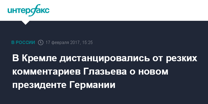 В Кремле дистанцировались от резких комментариев Глазьева о новом президенте Германии