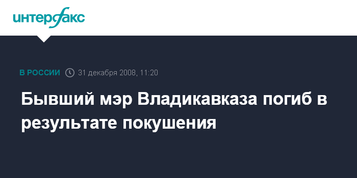 Москва. 31 декабря. INTERFAX.RU - Неизвестными убит в служебной машине бывший мэр Владикавказа Казбек Пагиев, сообщил агентству "Интерфакс-Юг" в среду первый заместитель министра внутренних дел Северной Осетии Сослан Сикоев.
