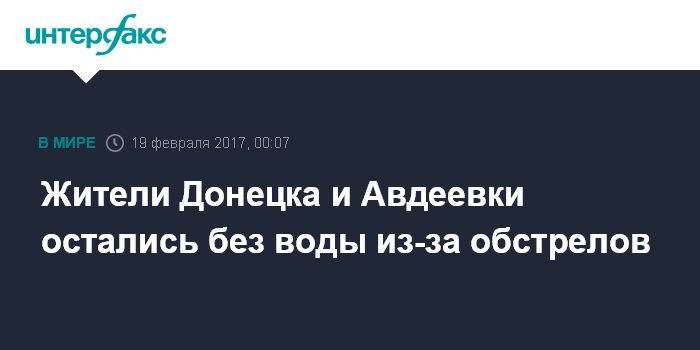 Москва. 19 февраля. INTERFAX.RU - Донецкая фильтровальная станция обесточена в результате обстрелов, в города и поселки Донбасса прекращена подача воды, сообщил в субботу сайт коммунального предприятия "Вода Донбасса"