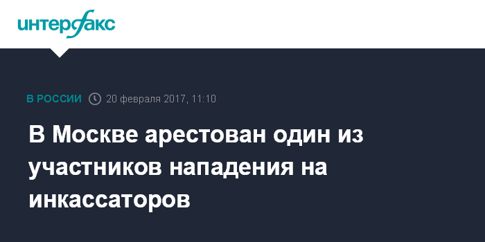 14 февраля на улице Римского-Корсакова в Москве было совершено вооруженное нападение на инкассаторов. По данным источника в правоохранительных органах, в ходе него один из трех преступников был убит ответным огнем, двое других скрылись. Кроме того, сообщалось о ранении инкассатора.
