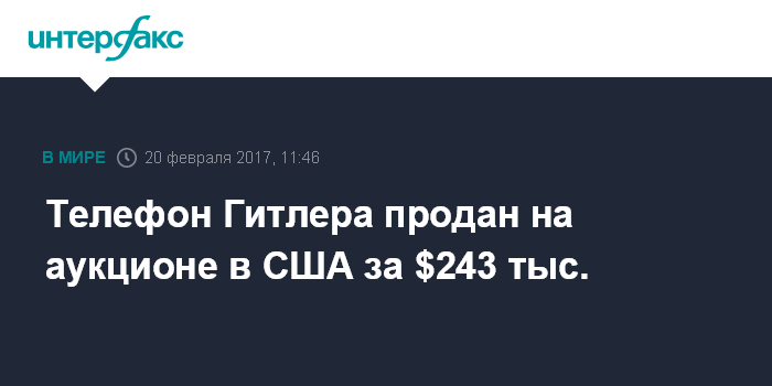 Телефон Гитлера продан на аукционе в США за $243 тыс.
