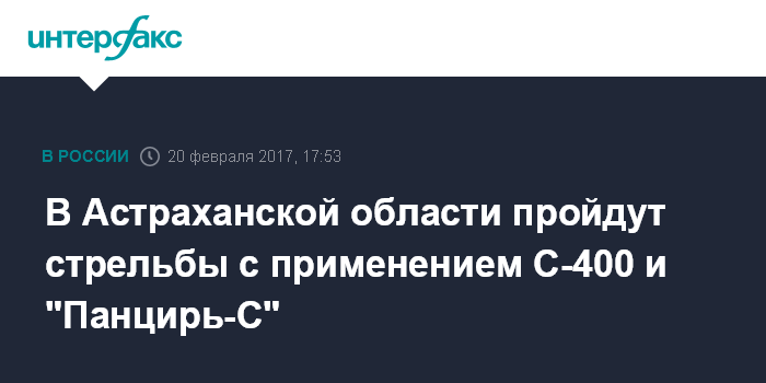 Москва. 20 февраля. INTERFAX.RU - В ходе учений на полигоне в Астраханской области пройдут боевые стрельбы из зенитных ракетных систем С-400 "Триумф" и зенитных ракетно-пушечных комплексов "Панцирь-С", сообщил в понедельник журналистам главком Воздушно-космических сил герой России генерал-полковник Виктор Бондарев.