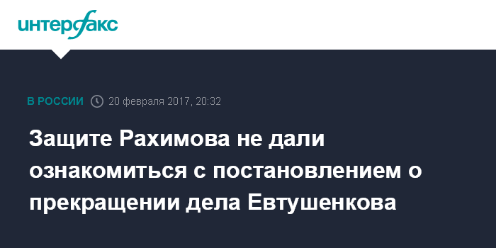 Защите Рахимова не дали ознакомиться с постановлением о прекращении дела Евтушенкова
