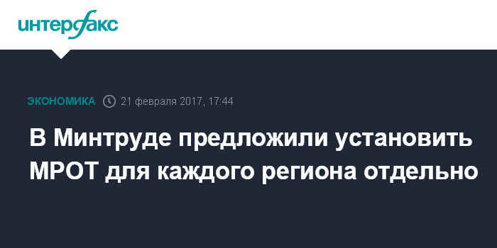 "Нам кажется, что решая проблему, целесообразно рассмотреть вопрос, что МРОТ должен фиксироваться на уровне региона. Нам представляется, что МРОТ должен быть равен региональному прожиточному минимуму. Нигде не сказано, что МРОТ должен быть единым по России", - сказал глава Минтруда Максим Топилин на заседании межфракционной рабочей группы в Госдуме по подготовке предложений по повышению МРОТ.