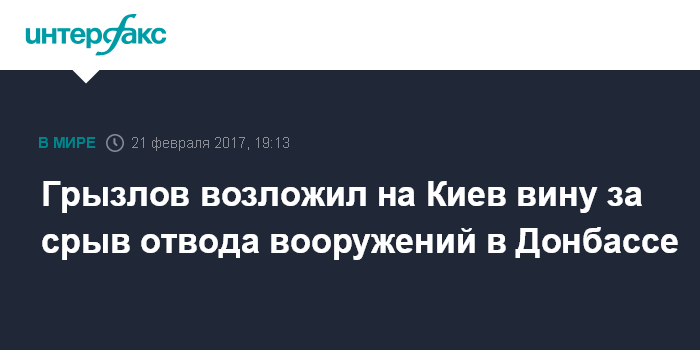 "На прошлом заседании Контактной группы достигнута договоренность об отводе тяжелого вооружения в соответствии с линиями, указанными в Минских соглашениях. Это должно было произойти 20 февраля. К сожалению, вынужден констатировать: на текущий момент внутри зоны безопасности фактически на всем протяжении линии разграничения все еще размещено тяжелое вооружение", - сказал Грызлов журналистам во вторник.