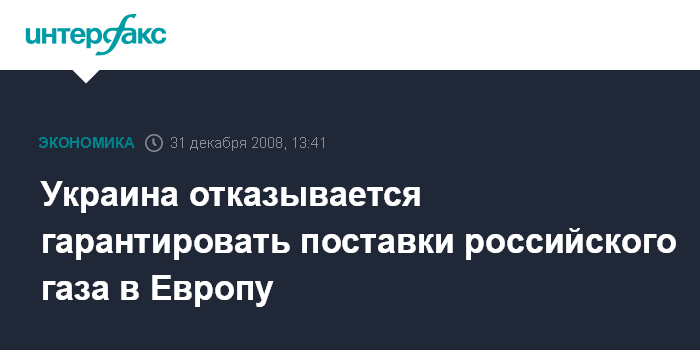 Москва. 31 декабря. INTERFAX.RU - Украинская сторона не сможет гарантировать поставки российского газа западноевропейским потребителям в случае, если с Россией не будет заключен контракт на поставки газа в 2009 г. и условия его транзита, сообщил "Интерфаксу" информированный источник в Киеве.