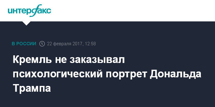 Москва. 22 февраля. INTERFAX.RU - Пресс-секретарь президента РФ Дмитрий Песков опроверг сообщения о том, что Кремль заказывал психологический портрет президента США Дональда Трампа.