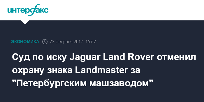 Суд по иску Jaguar Land Rover отменил охрану знака Landmaster за "Петербургским машзаводом"
