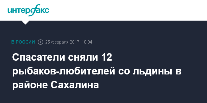 Москва. 25 февраля. INTERFAX.RU - Спасатели сняли со льдины, отколовшейся от припая в акватории юга Сахалина, 12 человек, сообщили "Интерфаксу" в пресс-службе ГУ МЧС региона.