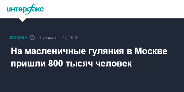 Москва. 26 февраля. INTERFAX.RU - Приблизительно 800 тысяч человек принимают участие в Москве в праздничных мероприятиях, посвященных Масленице, сообщили в воскресенье "Интерфаксу" в пресс-службе столичного ГУ МВД России.