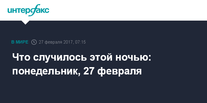 Москва. 27 февраля. INTERFAX.RU - Краткая сводка событий, произошедших к утру: