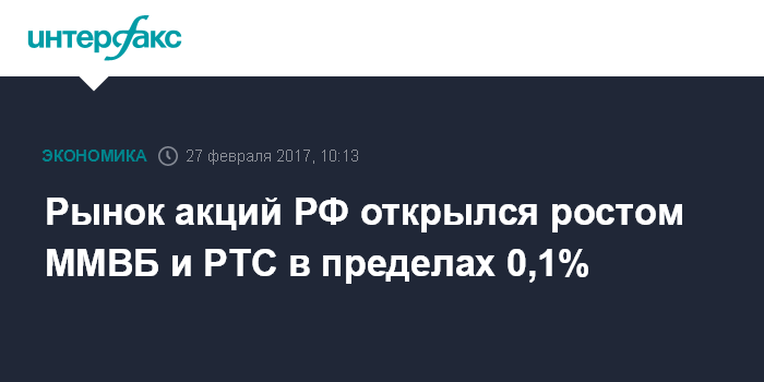 Москва. 27 февраля. INTERFAX.RU - Рынок акций РФ открылся в понедельник смешанной динамикой цен blue chips на фоне снижения Азии, роста нефти и укрепления рубля, индексы ММВБ и РТС за минуту торгов подросли в пределах 0,1%. К 10:01 МСК индекс ММВБ составил 2094,5 пункта (+0,07%), индекс РТС - 1129,8 пункта (+0,06%); рублевые цены основных "фишек" на "Московской бирже" изменились в пределах 1,1%.