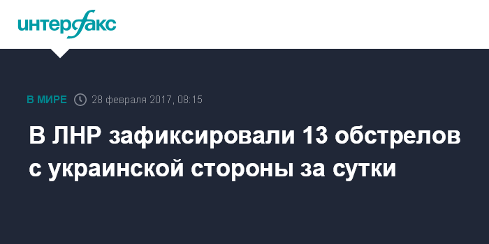 Москва. 28 февраля. INTERFAX.RU - Украинские военные 13 раз за сутки обстреливали территорию самопровозглашенной Луганской народной республики, сообщили "Интерфаксу" в Народной милиции ЛНР.