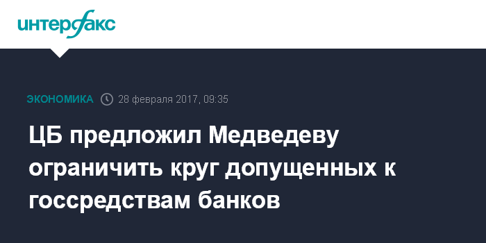ЦБ предложил Медведеву ограничить круг допущенных к госсредствам банков