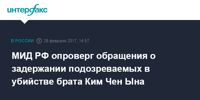 МИД РФ опроверг обращения о задержании подозреваемых в убийстве брата Ким Чен Ына
