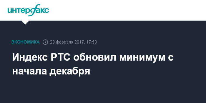 Москва. 28 февраля. INTERFAX.RU - Индекс РТС, один из основных российских фондовых индикаторов, к вечеру вторника пробил вниз отметку 1100 пунктов на фоне распродаж бумаг и ослабления рубля.