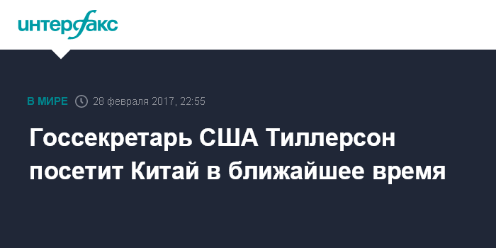 Москва. 28 февраля. INTERFAX.RU - Госсекретарь США Рекс Тиллерсон получил приглашение китайской стороны посетить Пекин и намерен сделать это в ближайшее время, сообщает госдепартамент США.