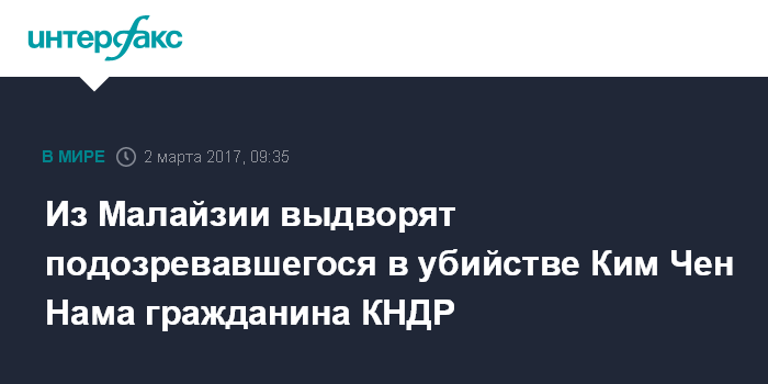 Ранее в четверг сообщалось, что Малайзия отменяет режим безвизового посещения страны для граждан КНДР на фоне осложнений между двумя странами, связанных со смертью Ким Чен Нама. Визовый режим с КНДР будет восстановлен 6 марта, отметил вице-премьер Малайзии Ахмад Захид Хамиди.