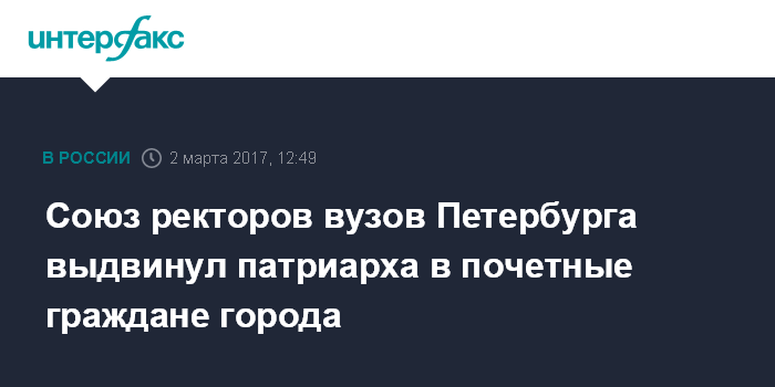 Союз ректоров вузов Петербурга выдвинул патриарха в почетные граждане города