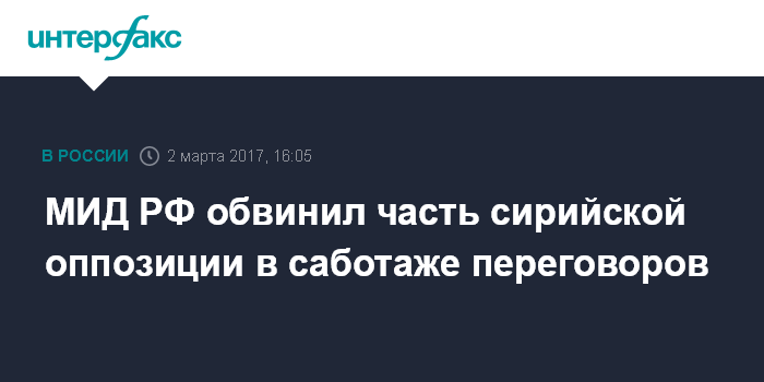 МИД РФ обвинил часть сирийской оппозиции в саботаже переговоров