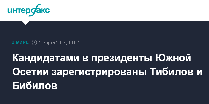 Кандидатами в президенты Южной Осетии зарегистрированы Тибилов и Бибилов
